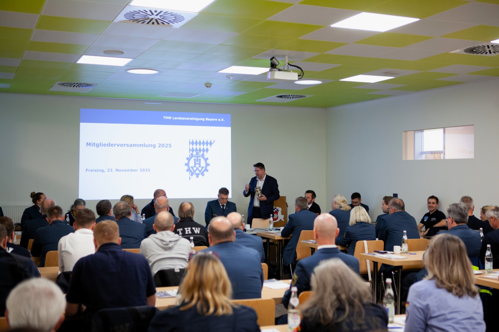 Über 50 Delegierte der bayerischen Helfervereinigungen und Fördervereine kamen am Samstag, den 22. November 2025, im Ortsverband Freising zusammen. Bei der Landesversammlung der THW Landesvereinigung Bayern e. V. stand die strategische Ausrichtung des THW in den kommenden Jahren im Fokus.